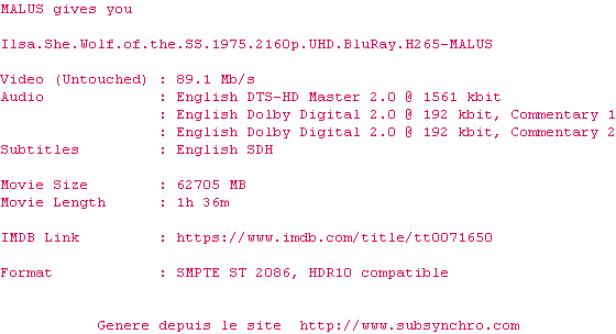 Ilsa, diabolique gardienne d'un camp de concentration, mène des terribles expérimentations médicales sur les détenues.