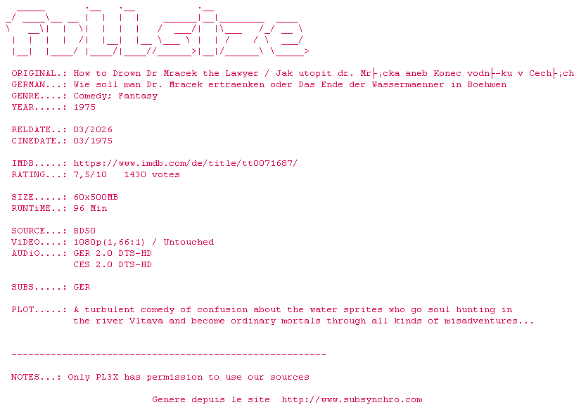 Telechargez le RSS « Fichier de la release How.To.Drown.Dr.Mracek.The.Lawyer.1975.DUAL.COMPLETE.BLURAY-FULLSiZE »
