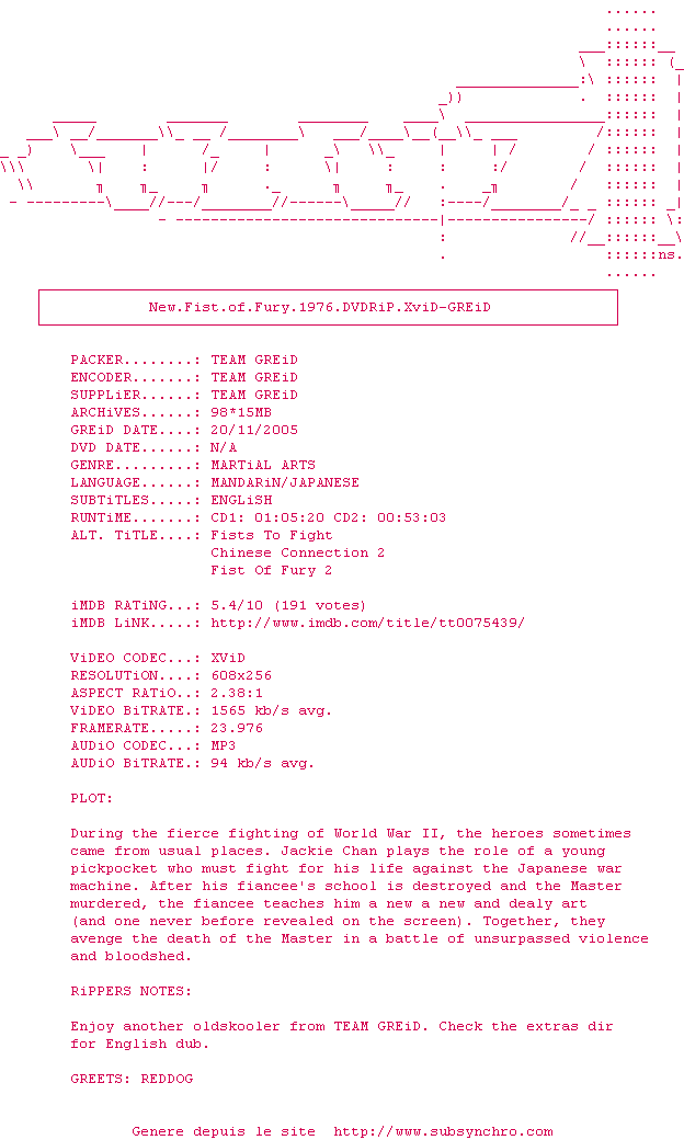 L'école d'arts martiaux de Chong Wu se voit menacée par les japonais désireux de contrôler tous les établissements chinois. La mort de Chen Chu n'arrange pas leurs affaires. L'école se retrouve mise à sac et de nombreux élèves se font tuer. Parmi les survivants, un groupe décide de résister et de reconstruire l'école.
