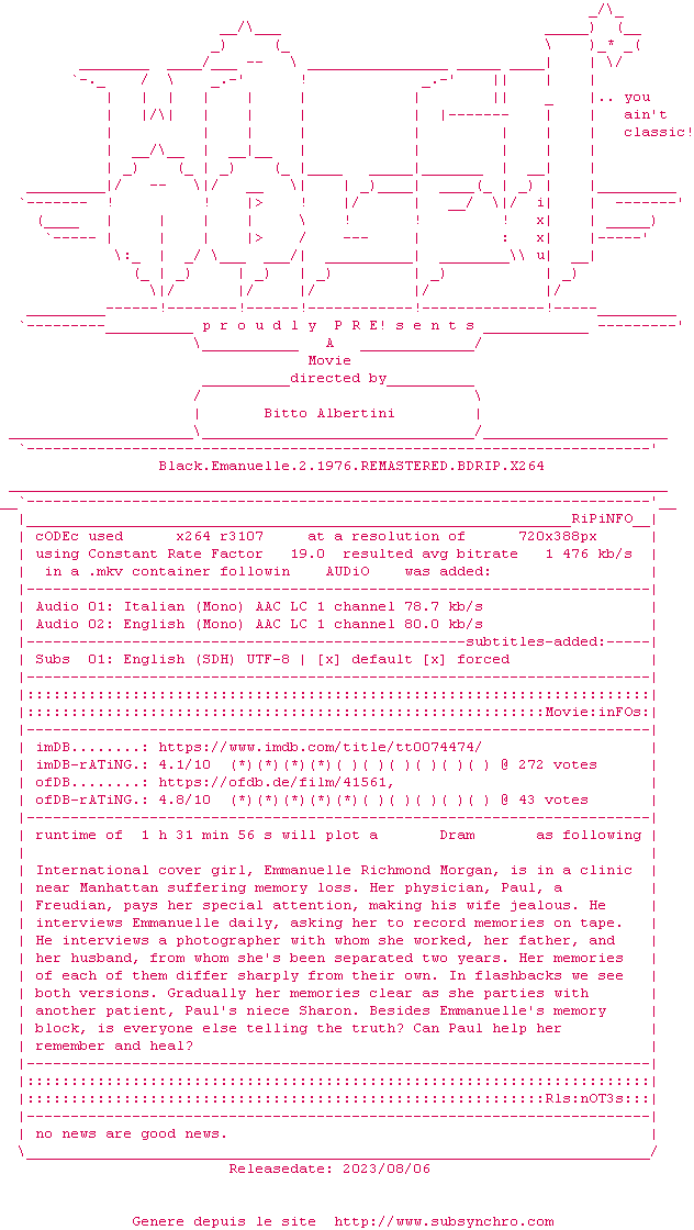 Voir le nfo de la release Black.Emanuelle.2.1976.1080P.BLURAY.x264-WATCHABLE