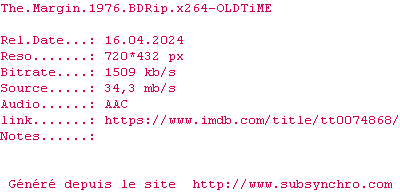 Voir le nfo de la release The.Margin.1976.BDRip.x264-OLDTiME