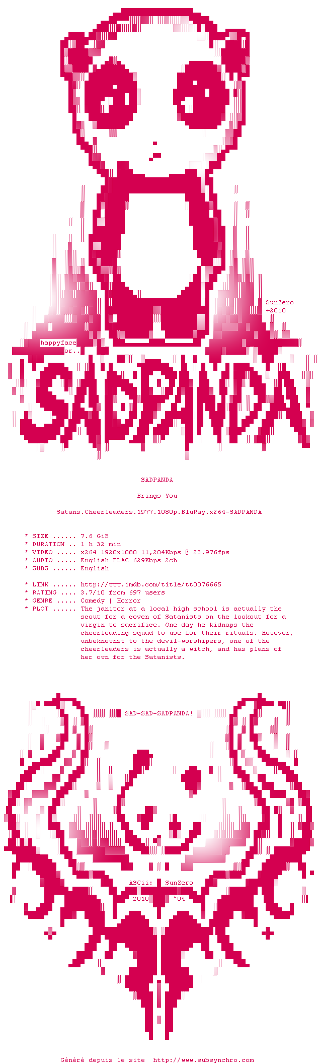 | SADPANDA | Satans.Cheerleaders.1977.720p.BluRay.x264-SADPANDA OpenSubtitles | 0 fichier |