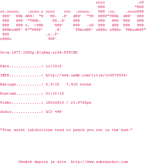 Voir le nfo de la release Orca.1977.1080p.BluRay.x264-PSYCHD