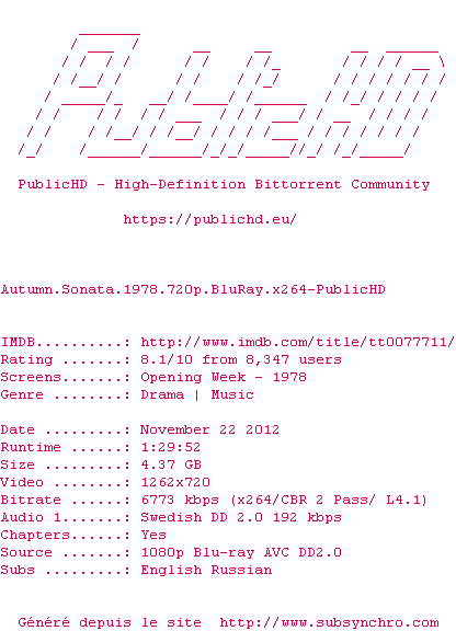 Sonate d'automne (Höstsonaten / Autumn Sonata) , realise en 1978
