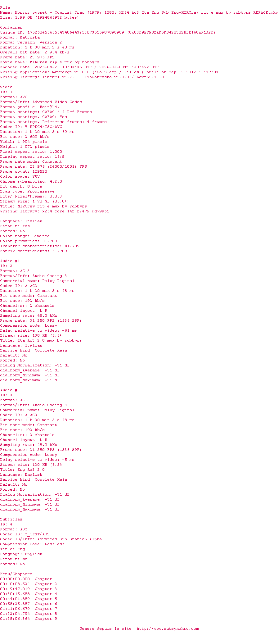 Horror.Puppet.-.Tourist.Trap.1979.1080p.H264.Ac3.Ita.Eng.Sub.Eng-MIRCrew