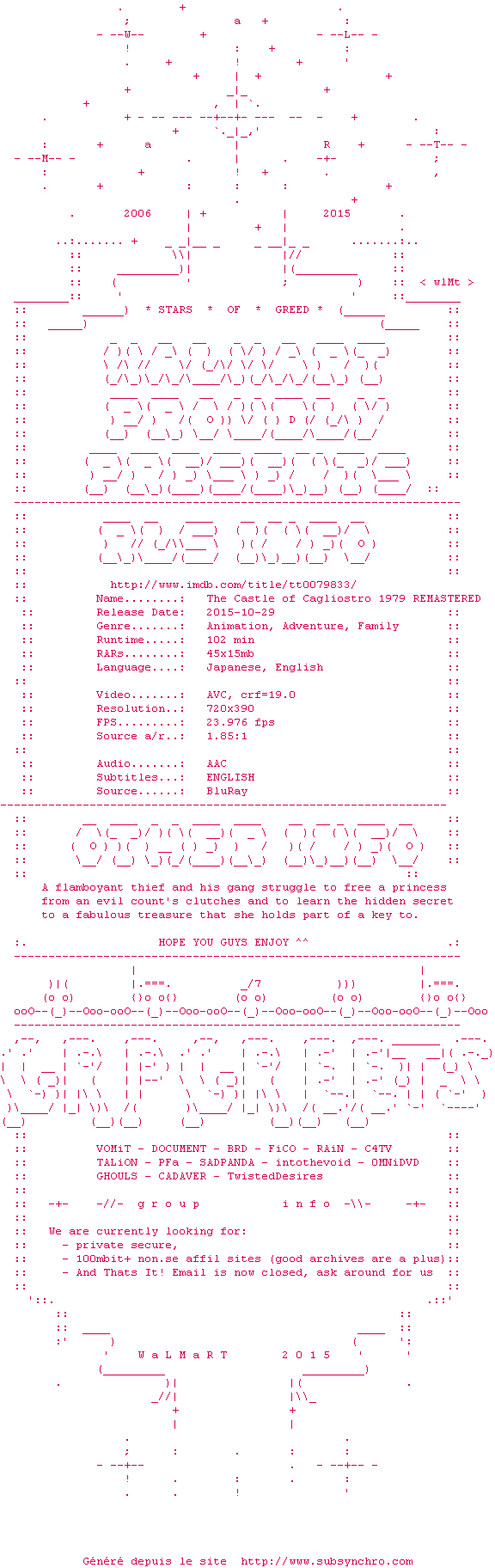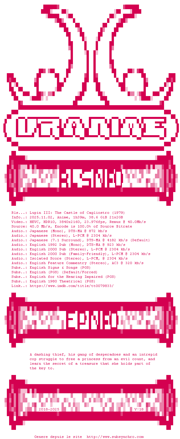 Bien que séduire les plus jolies femmes du monde soit son passe-temps favori, Edgar, gentleman-cambrioleur, vient de dévaliser avec succès un casino très protégé. C'est alors qu'il découvre que tous les billets de banque qui constituent son butin sont faux. Froissé d'avoir été si facilement abusé, il décide de découvrir qui lui a joué un si mauvais tour. Son enquête lui révèle que les fausses coupures proviennent d'un petit Etat, la petite principauté de Cagliostro. Il décide de s'y rendre, bien décidé à se venger, et du même coup à voler la plus importante somme de sa carrière. Un Miyazaki méconnu en Occident, qui faut pourtant partie du cycle "Lupin III", très populaire au Japon.