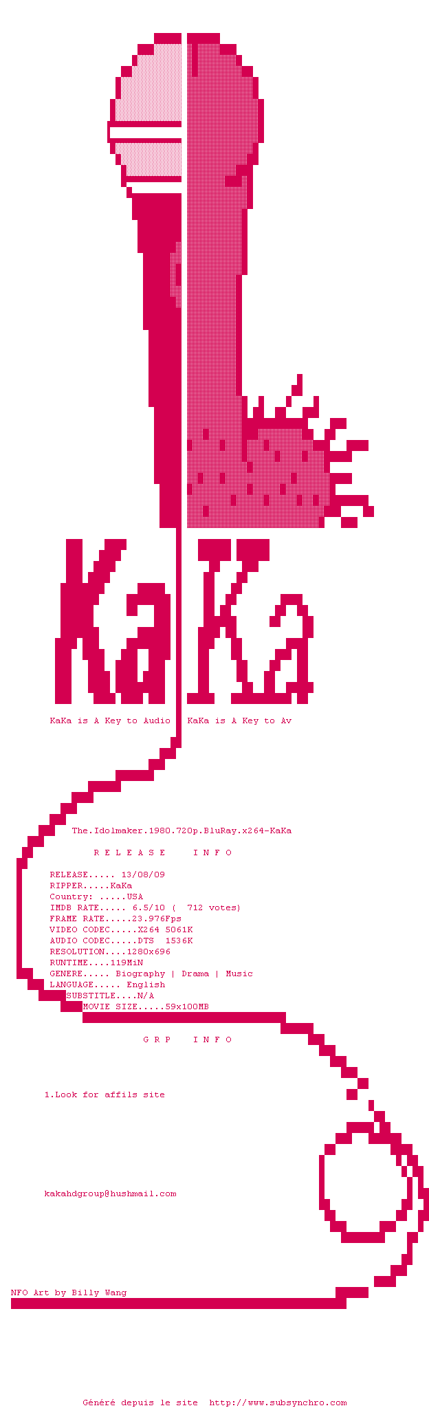 | Voir le nfo de la release The.Idolmaker.1980.720p.BluRay.x264-KaKa | KaKa | The.Idolmaker.1980.720p.BluRay.x264-KaKa OpenSubtitles | 0 fichier |