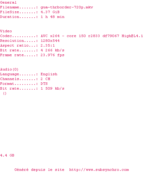 Voir le nfo de la release The.Border.1982.720p.BluRay.x264-GUACAMOLE