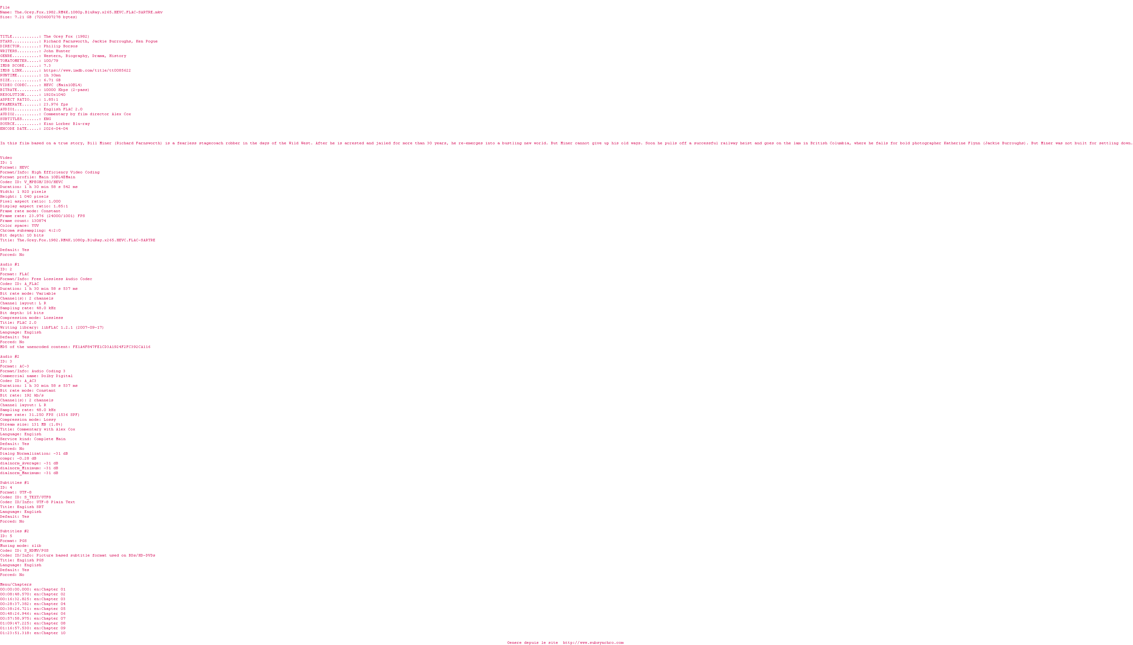 Commentez le fichier The.Grey.Fox.1982.RM4K.1080p.BluRay.x265.HEVC.FLAC-SARTRE.srt
