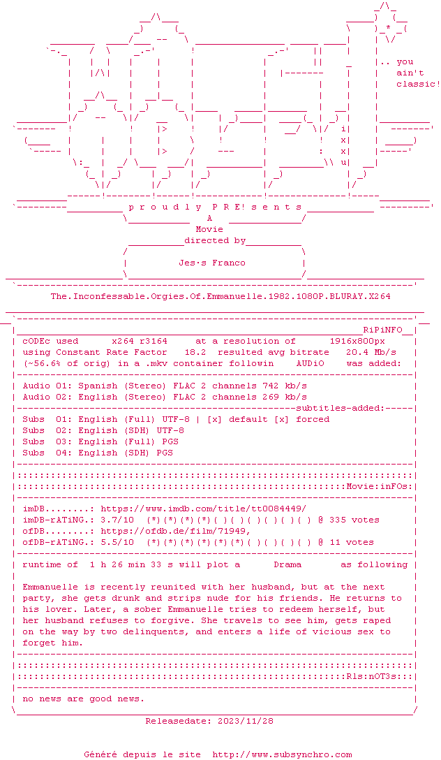 The Inconfessable Orgies of Emmanuelle (Las orgÃÂas inconfesables de Emmanuelle) , realise en 1982