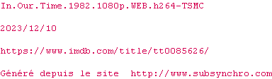 Voir le nfo de la release In.Our.Time.1982.1080p.WEB.H264-TSMC