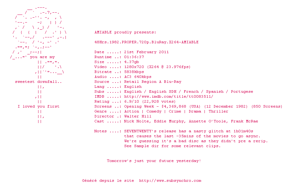 Un grand classique des années 80. Murphy et Nolte sont au top. De l'humour, de l'action, que demander de plus? En ce qui me concerne, rien.