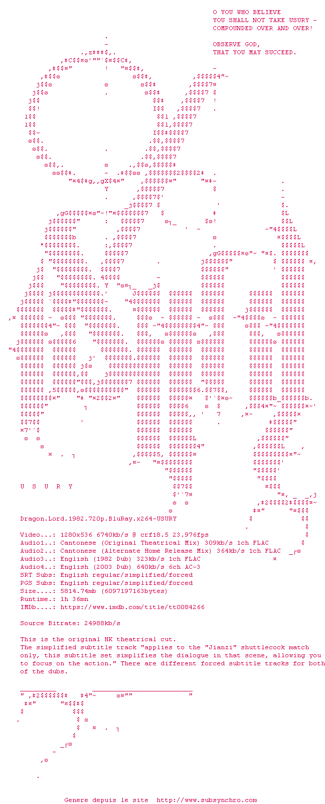 Telechargez le RSS « Fichier de la release Dragon.Lord.1982.720p.BluRay.x264-USURY »