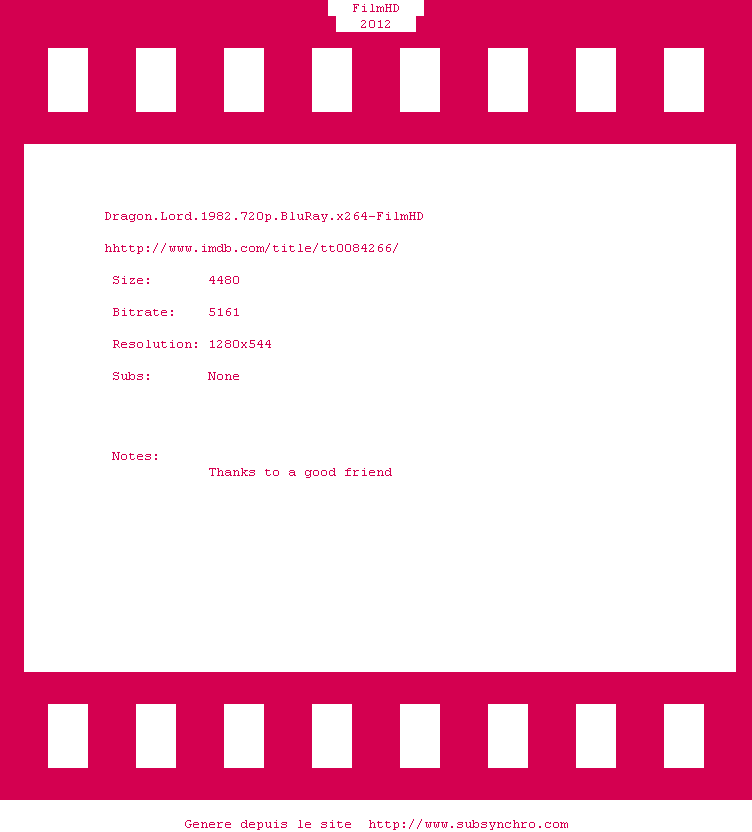 Telechargez le RSS « Fichier de la release Dragon.Lord.1982.DUBBED.720p.BluRay.x264-FilmHD »