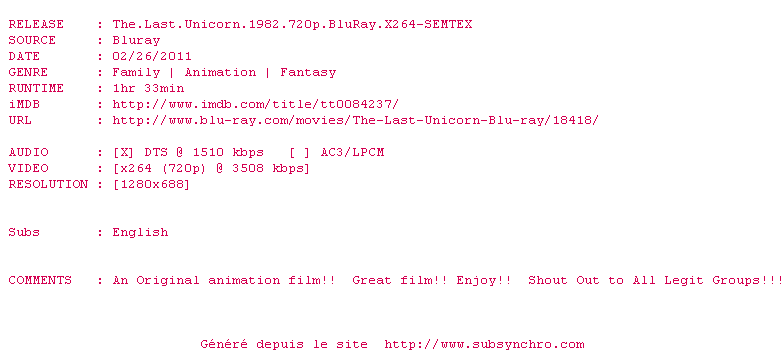 Le commentaire de ahuribarbu Commente par ahuribarbu (142), Le Mardi 19 Juin 2018 à 23h55 Dessin animé magique de mon enfance, à la fois onirique et épique. Nous sommes loin du formatage imposé par Disney. Mais du coup ce dessin animé peut surprendre, autant par son histoire que par son dessin. Et je ne le conseillerais pas avant 8 ans car il peut être effrayant avant. Ceci dit je le considère comme un chef d'oeuvre et c'est une opinion partagée. Avec des voix de légende comme celle de Christopher Lee, des animateurs et artistes qui sont devenus le coeur du studio Ghibli, les musiques et chansons de Jimmy Webb jouées par le groupe America, une histoire d'espoir dans un monde qui se meurt... on ne peut rester indifférent devant cette oeuvre. 9 / 10 0 0