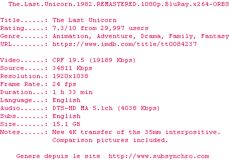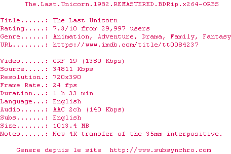 Dessin animé magique de mon enfance, à la fois onirique et épique. Nous sommes loin du formatage imposé par Disney. Mais du coup ce dessin animé peut surprendre, autant par son histoire que par son dessin. Et je ne le conseillerais pas avant 8 ans car il peut être effrayant avant. Ceci dit je le considère comme un chef d'oeuvre et c'est une opinion partagée. Avec des voix de légende comme celle de Christopher Lee, des animateurs et artistes qui sont devenus le coeur du studio Ghibli, les musiques et chansons de Jimmy Webb jouées par le groupe America, une histoire d'espoir dans un monde qui se meurt... on ne peut rester indifférent devant cette oeuvre.