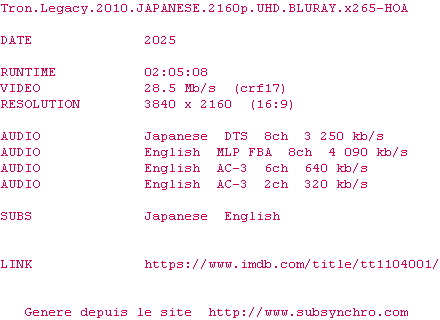 La release Tron.Legacy.2010.JAPANESE.2160p.UHD.BLURAY.x265-HOA est en 4K