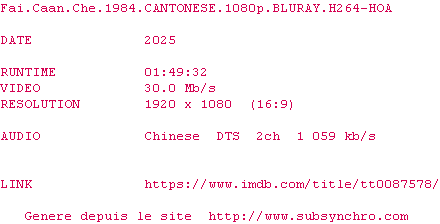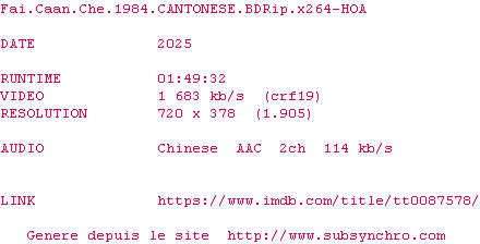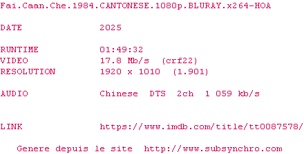 Voir le nfo de la release Fai.Caan.Che.1984.CANTONESE.1080p.BLURAY.H264-HOA