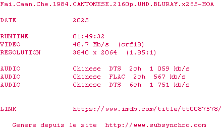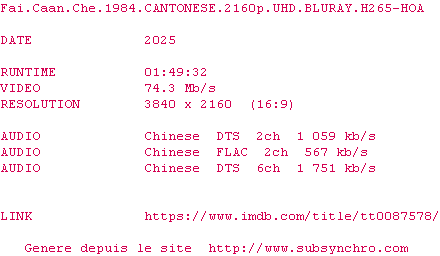Voir le nfo de la release Fai.Caan.Che.1984.CANTONESE.2160p.UHD.BLURAY.H265-HOA