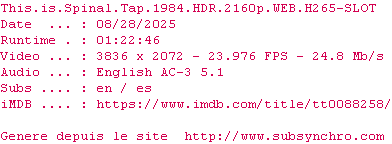 Voir le nfo de la release This.Is.Spinal.Tap.1984.HDR.2160p.WEB.H265-SLOT