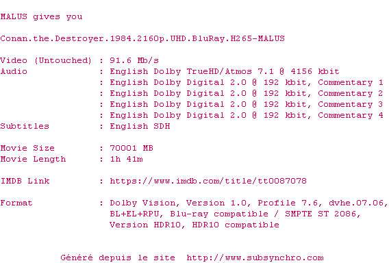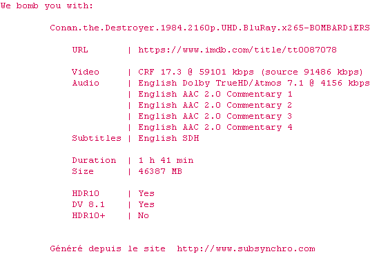 Conan le Destructeur (Conan the Destroyer) , realise en 1984