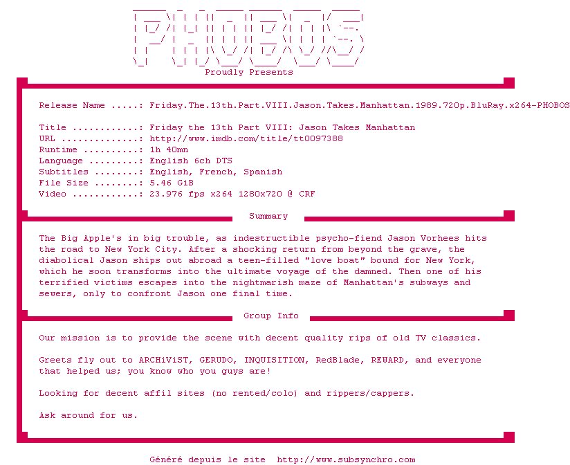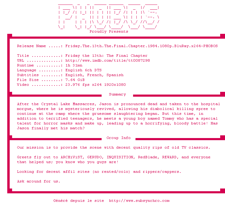 Ce film fait partie de la saga Vendredi 13