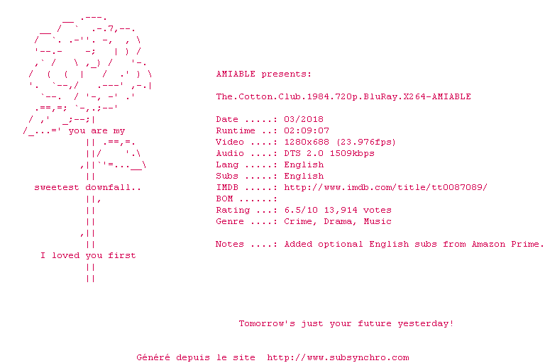Nfo de la release The.Cotton.Club.1984.720p.BluRay.x264-AMIABLE