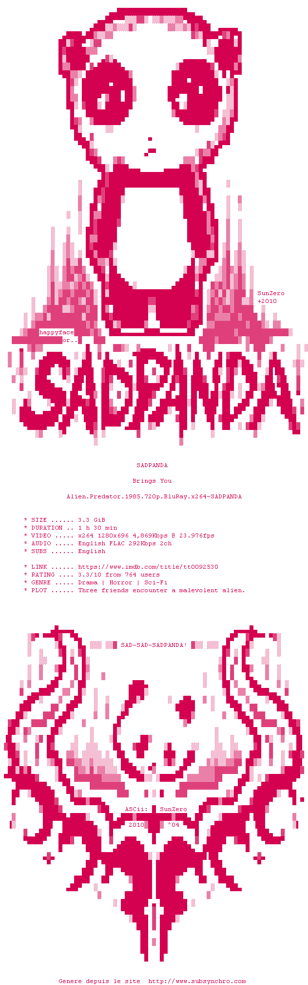 Y avez-vous pense ? Nous proposons déjà 1954 sous-titres pour le film Alien Predators. Avez-vous essaye de voir si ces sous-titres etaient compatibles avec cette release ? On vous laisse le soin de tester cela pour nous et de contribuer au site en postant le sous-titre en cas de compatiblite constatee !