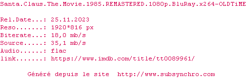 Voir le nfo de la release Santa.Claus.1985.1080p.Bluray.x264-hV
