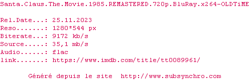 Voir le nfo de la release Santa.Claus.The.Movie.1985.REMASTERED.720p.BluRay.x264-OLDTiME