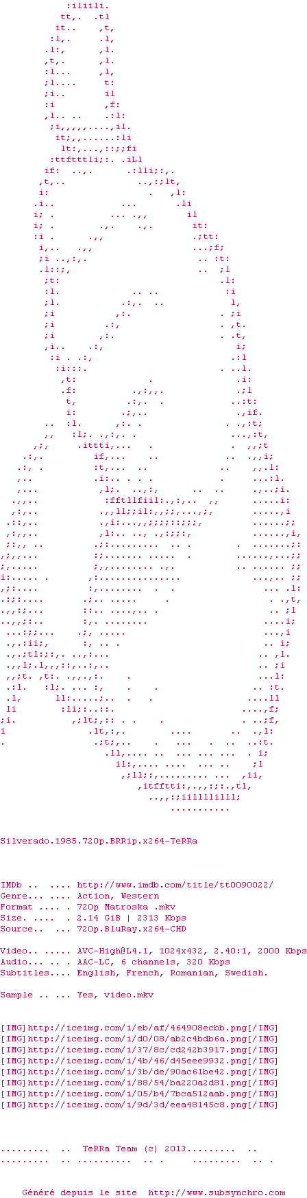 Voir le nfo de la release Silverado.1985.720p.BRRip.x264-TeRRa