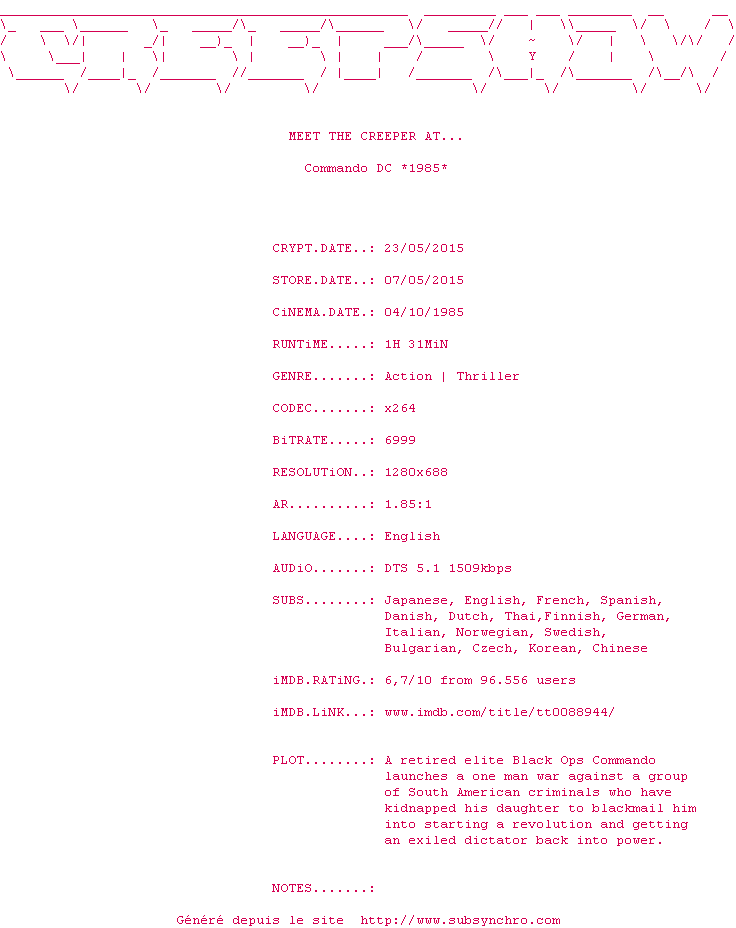 Le commentaire de kidchap Commente par kidchap (21), Le Jeudi 27 Aout 2015 à 12h13 Le meilleur Schwarzy ! "J'aurai ta peau Bennett" Repondre a kidchap 10 / 10 0 0