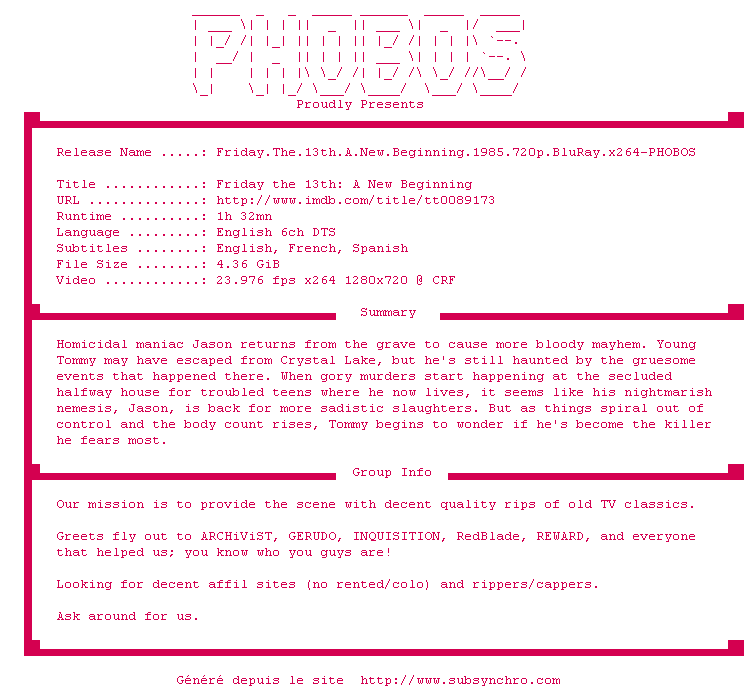 Le "twist" du film peut être deviné par n'importe qui ayant un cerveau fonctionnel, et l'histoire n'a rien d'exceptionnel (même pour un Vendredi 13, même pour le 5e film dans une série).