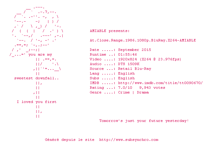 Telechargez le RSS « Fichier de la release At.Close.Range.1986.1080p.BluRay.X264-AMIABLE »