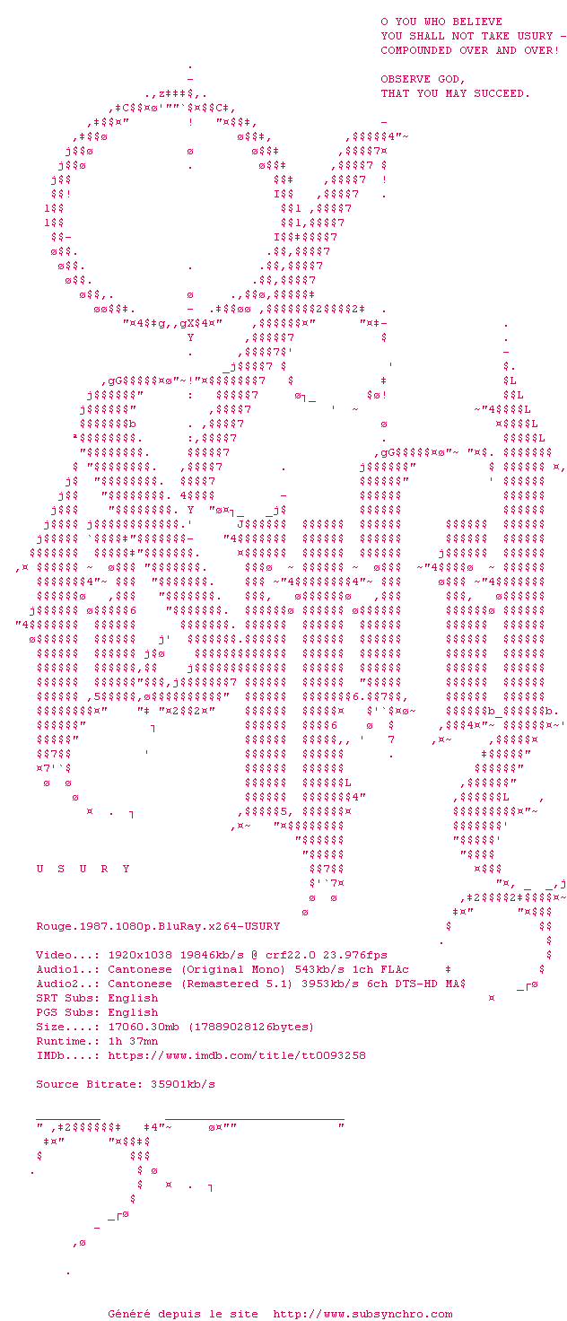 Voir le nfo de la release Rouge.1987.1080p.BluRay.x264-USURY