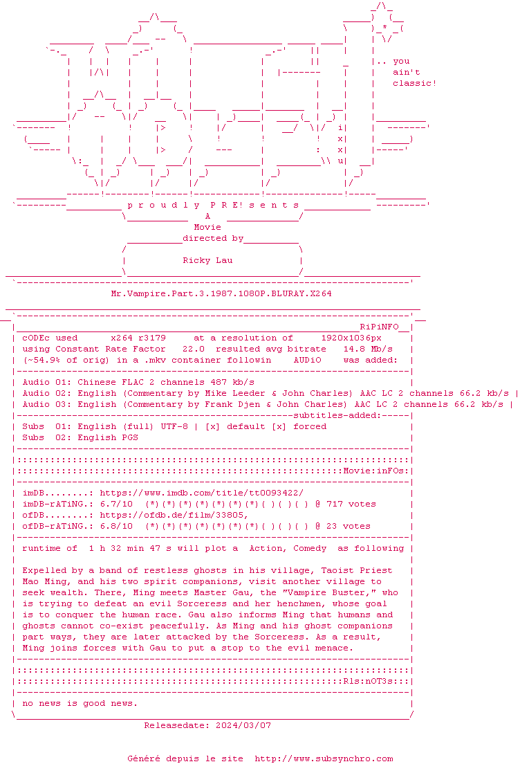 Voir le nfo de la release Mr.Vampire.Part.3.1987.1080P.BLURAY.x264-WATCHABLE