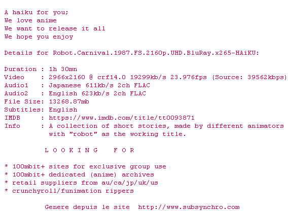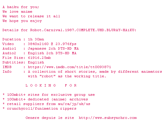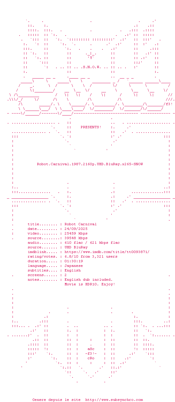 Plusieurs sketches, pour un seule vision des robots dans l'esprit de Fantasia. Presence, Deprive, et Nightmare sont les plus marquants.