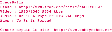 Voir le nfo de la release Spaceballs.1987.1080p.MULTi.BluRay.x264-ForceBleue