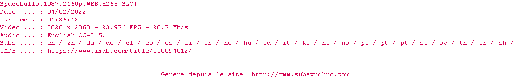 Voir le nfo de la release Spaceballs.1987.2160p.WEB.H265-SLOT