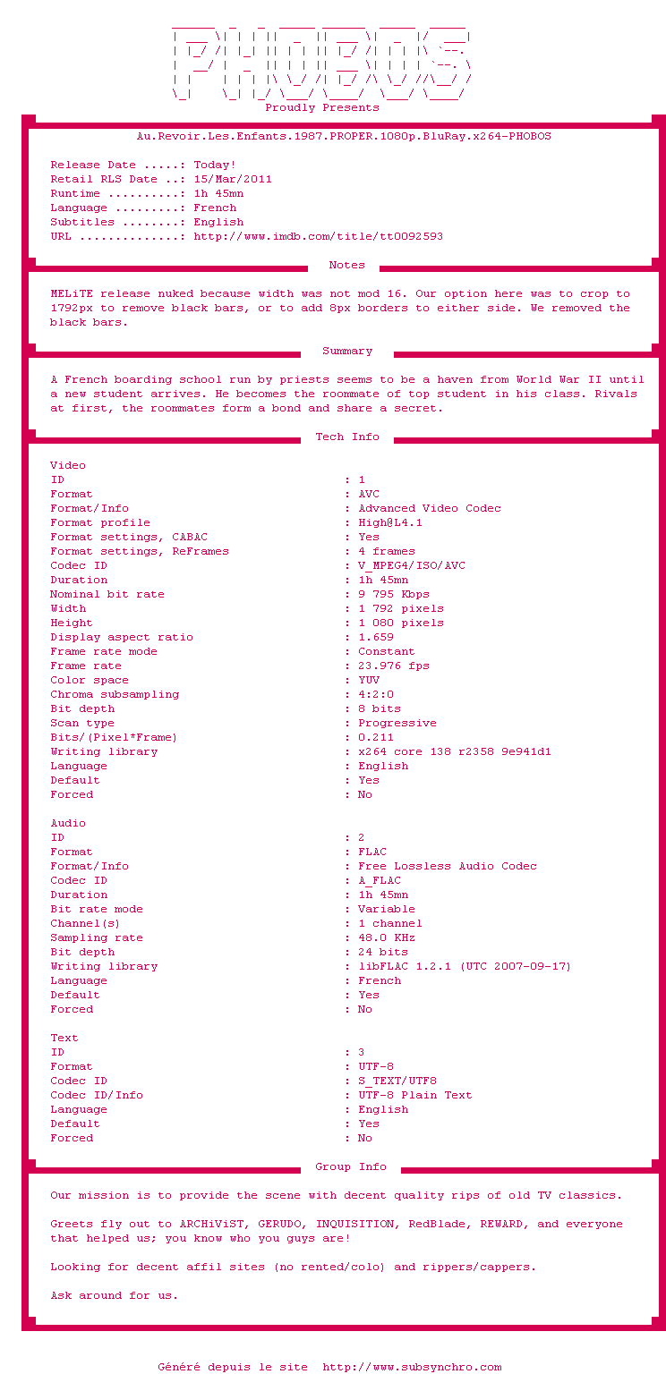 Voir le nfo de la release Au.Revoir.Les.Enfants.1987.PROPER.1080p.BluRay.x264-PHOBOS