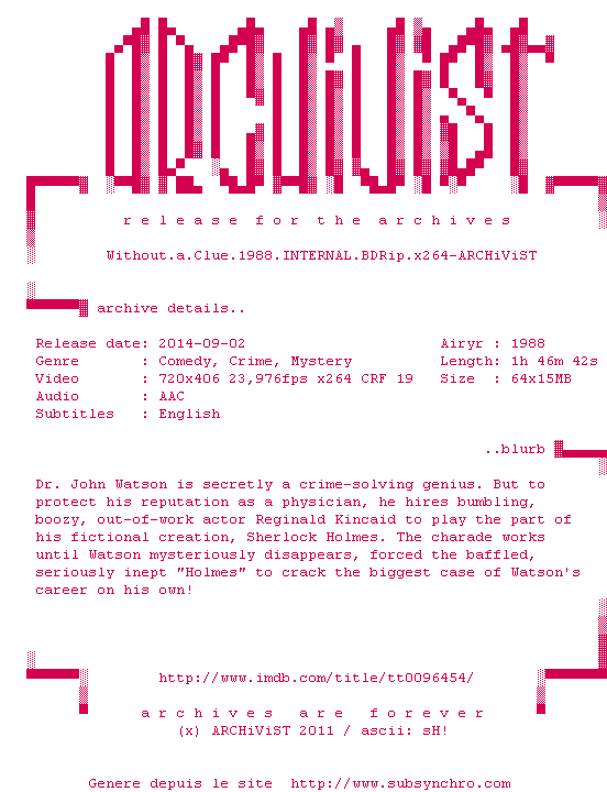 Pour ne pas briser son image de medecin, le docteur Watson, fin limier, a invente un detective mythique, Sherlock Holmes, a qui il attribue ses propres talents. Sa creation devient si celebre qu'il est oblige de lui donner vie. Il demande a Reginald Kincaid, petit acteur de tragedie, d'incarner son personnage. Las ! Kincaid se revele etre un alcoolique, un joueur et un grand amateur de dames...