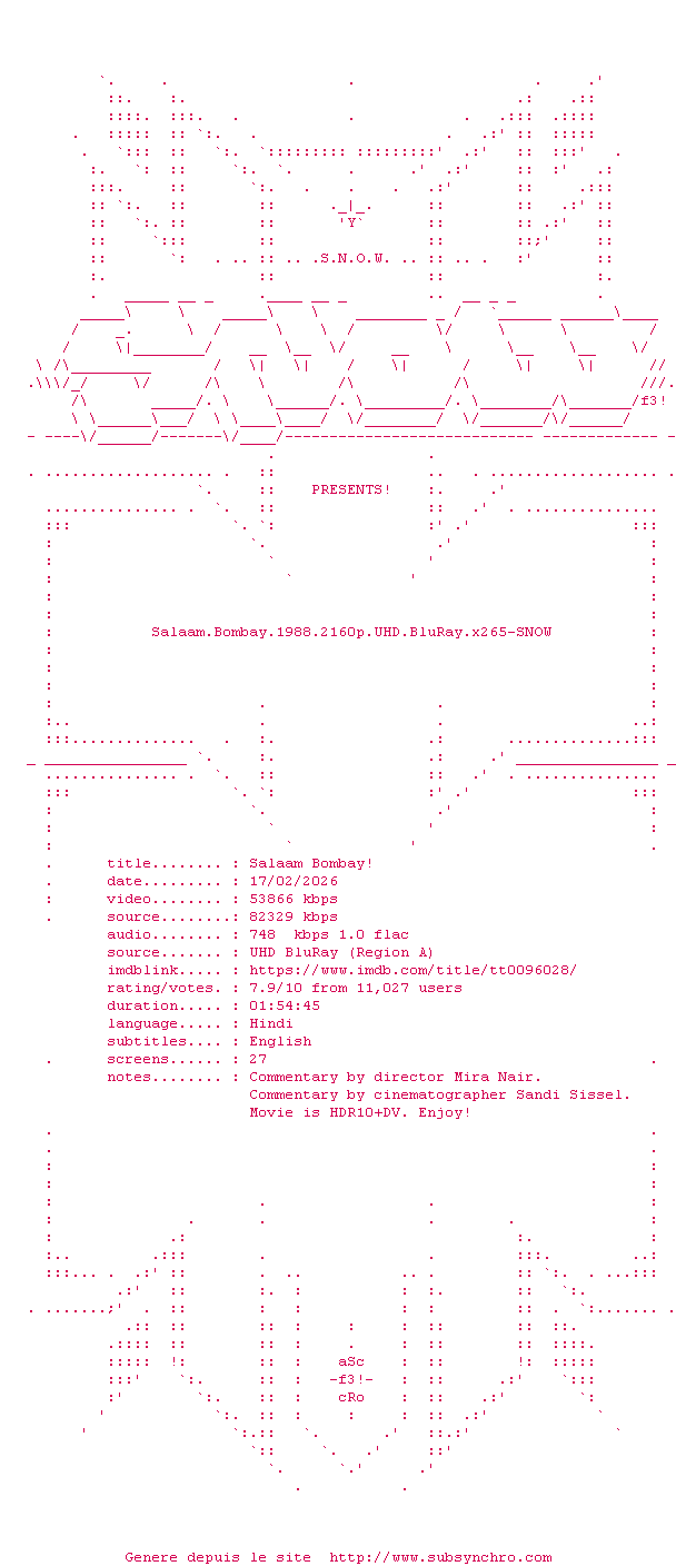 La release Salaam.Bombay.1988.2160p.UHD.BluRay.x265-SNOW est en 4K