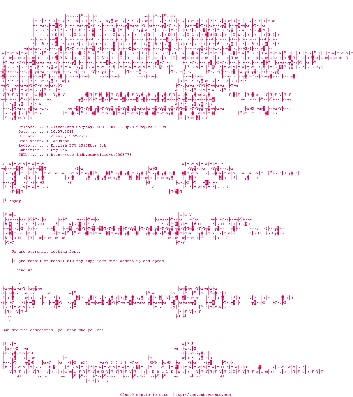 Voir le nfo de la release Oliver.and.Company.1988.1080p.BluRay.x264-HD4U