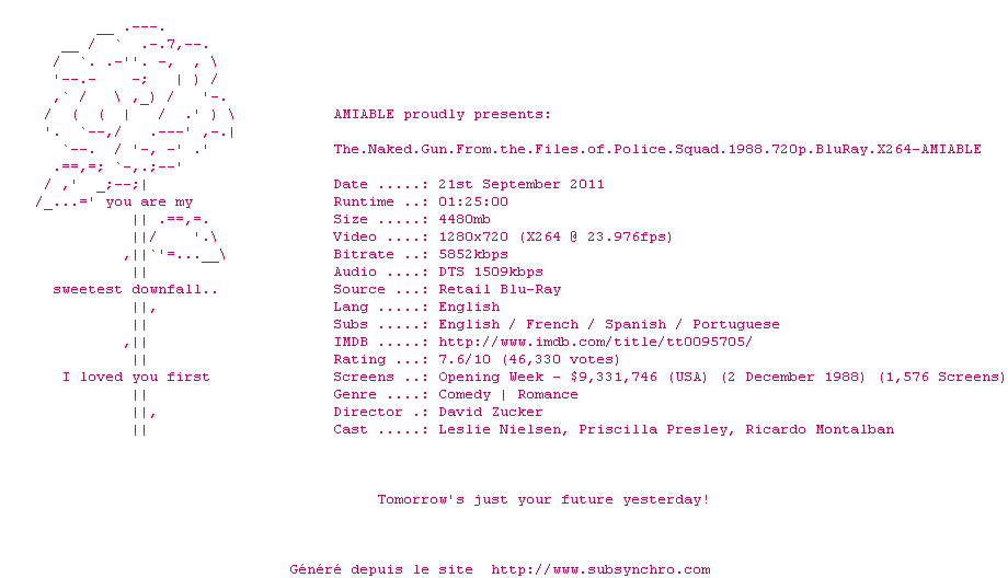 Commentez le fichier The.Naked.Gun.1988.720p.BluRay.X264-AMIABLE.srt