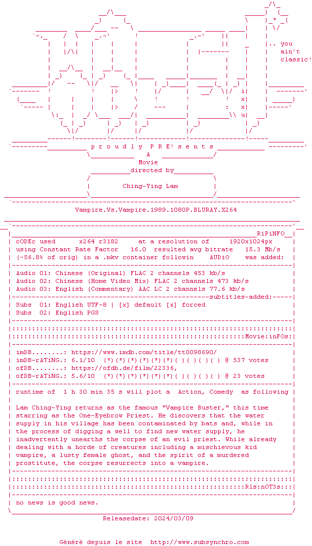 Voir le nfo de la release Vampire.Vs.Vampire.1989.1080P.BLURAY.x264-WATCHABLE