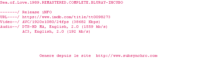 Voir le nfo de la release Sea.Of.Love.1989.REMASTERED.COMPLETE.BLURAY-INCUBO