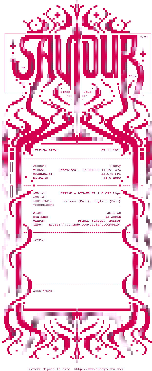 Y avez-vous pense ? Nous proposons déjà 1 sous-titre pour le film Sukkubus - den Teufel im Leib. Avez-vous essaye de voir si ces sous-titres etaient compatibles avec cette release ? On vous laisse le soin de tester cela pour nous et de contribuer au site en postant le sous-titre en cas de compatiblite constatee !