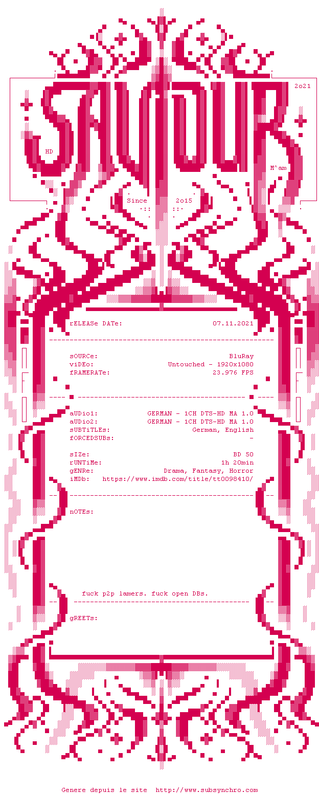 Y avez-vous pense ? Nous proposons déjà 1 sous-titre pour le film Sukkubus - den Teufel im Leib. Avez-vous essaye de voir si ces sous-titres etaient compatibles avec cette release ? On vous laisse le soin de tester cela pour nous et de contribuer au site en postant le sous-titre en cas de compatiblite constatee !