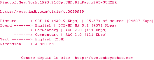 Voir le nfo de la release King.Of.New.York.1990.2160p.UHD.BluRay.H265-WOU