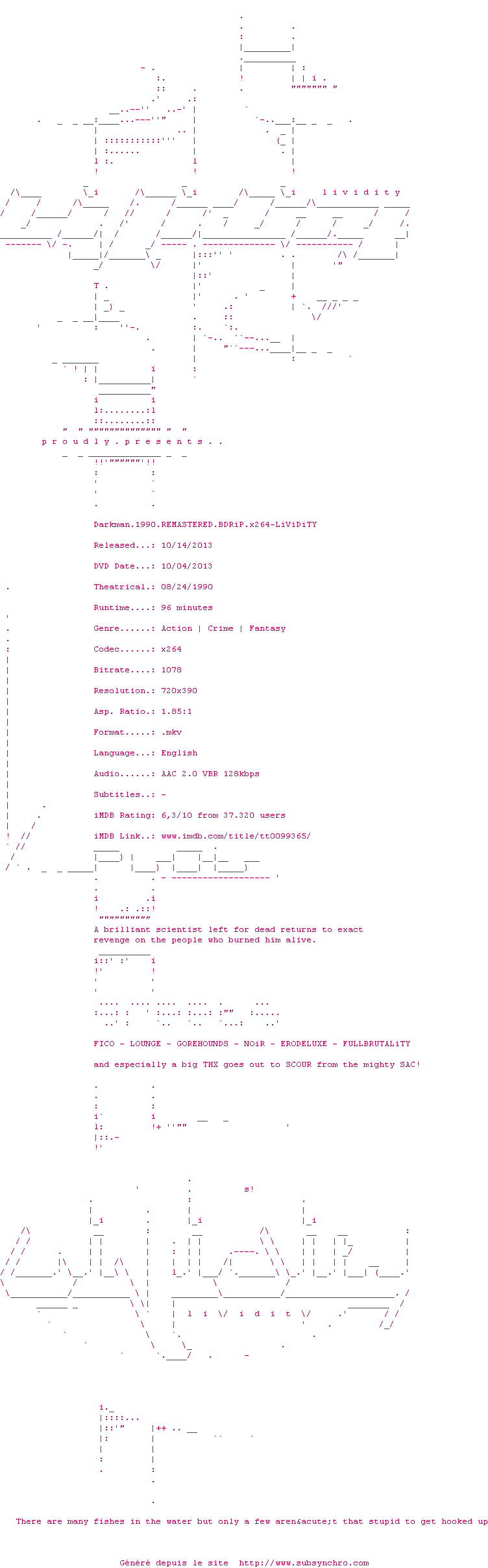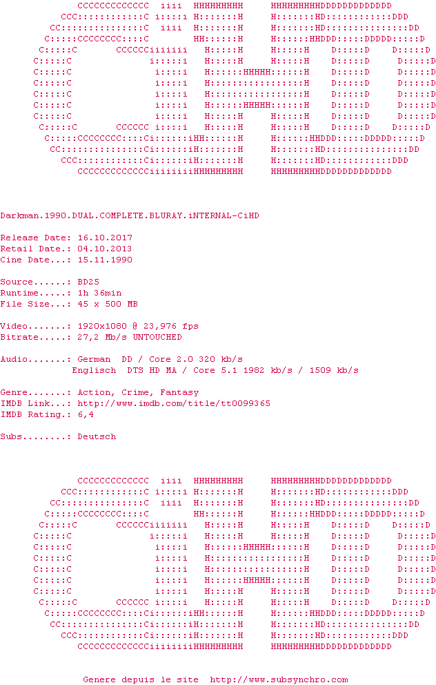 Voir le nfo de la release Darkman.1990.DUAL.COMPLETE.BLURAY.iNTERNAL-CiHD
